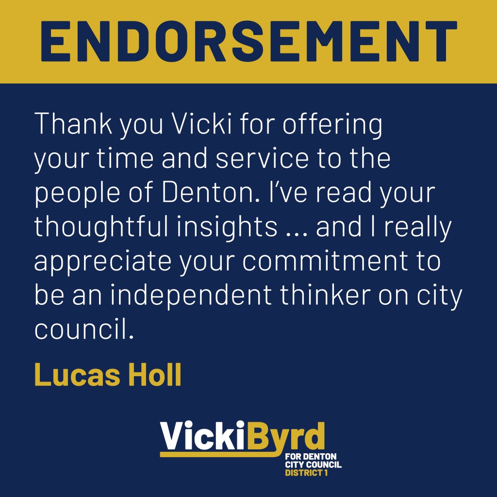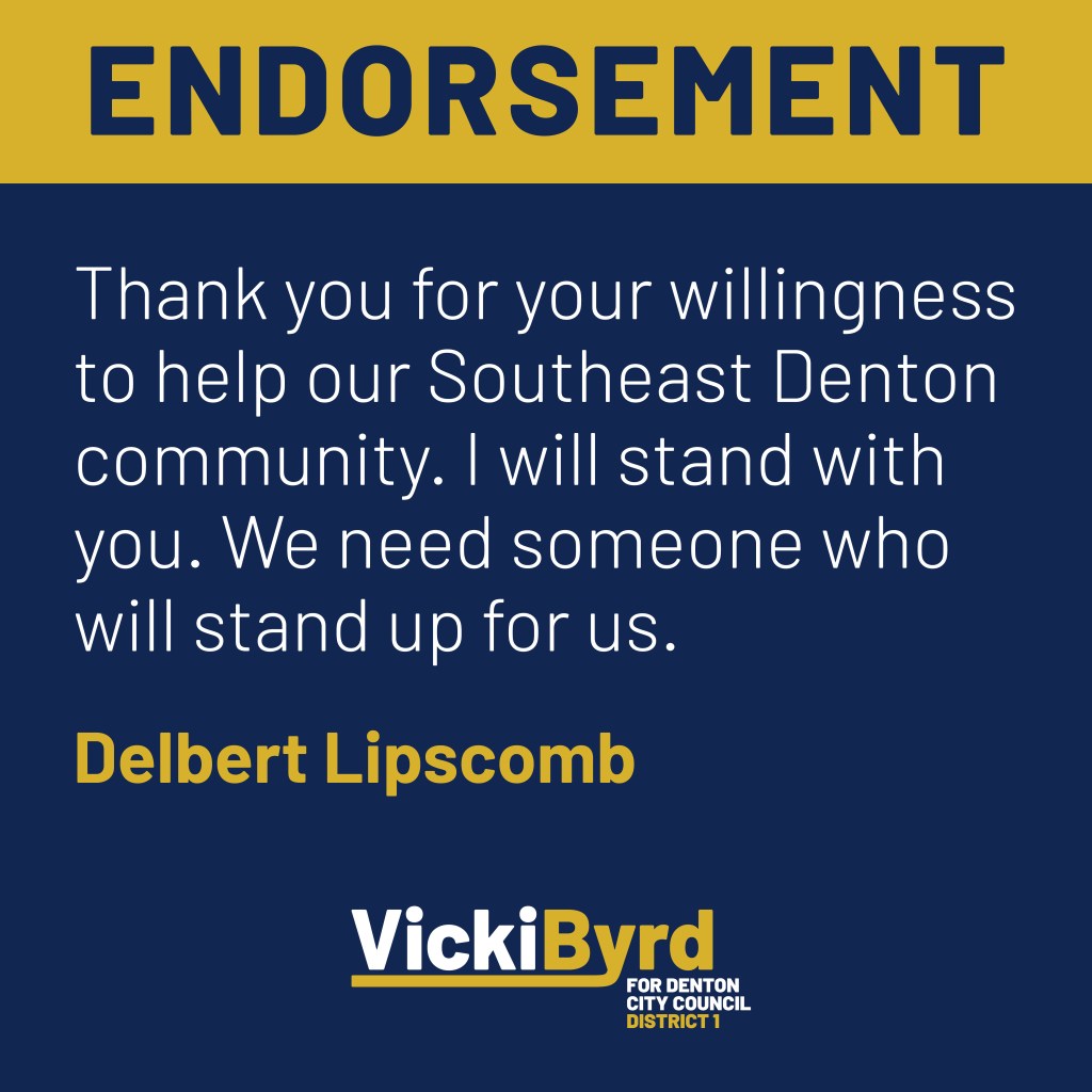 Denton has been my only home of choice; raising me into the person I am today. This town has equipped me with the temperament and vision to serve the people who reside here; longing for the chance to give back an ounce of what was instilled in me.